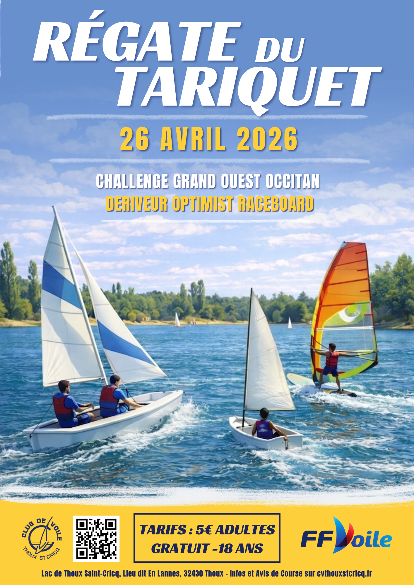 Le Club de Voile de Thoux Saint-Cricq vous donne rendez-vous le dimanche 26 avril 2026 pour une nouvelle édition de la traditionnelle Régate du Tariquet, […]